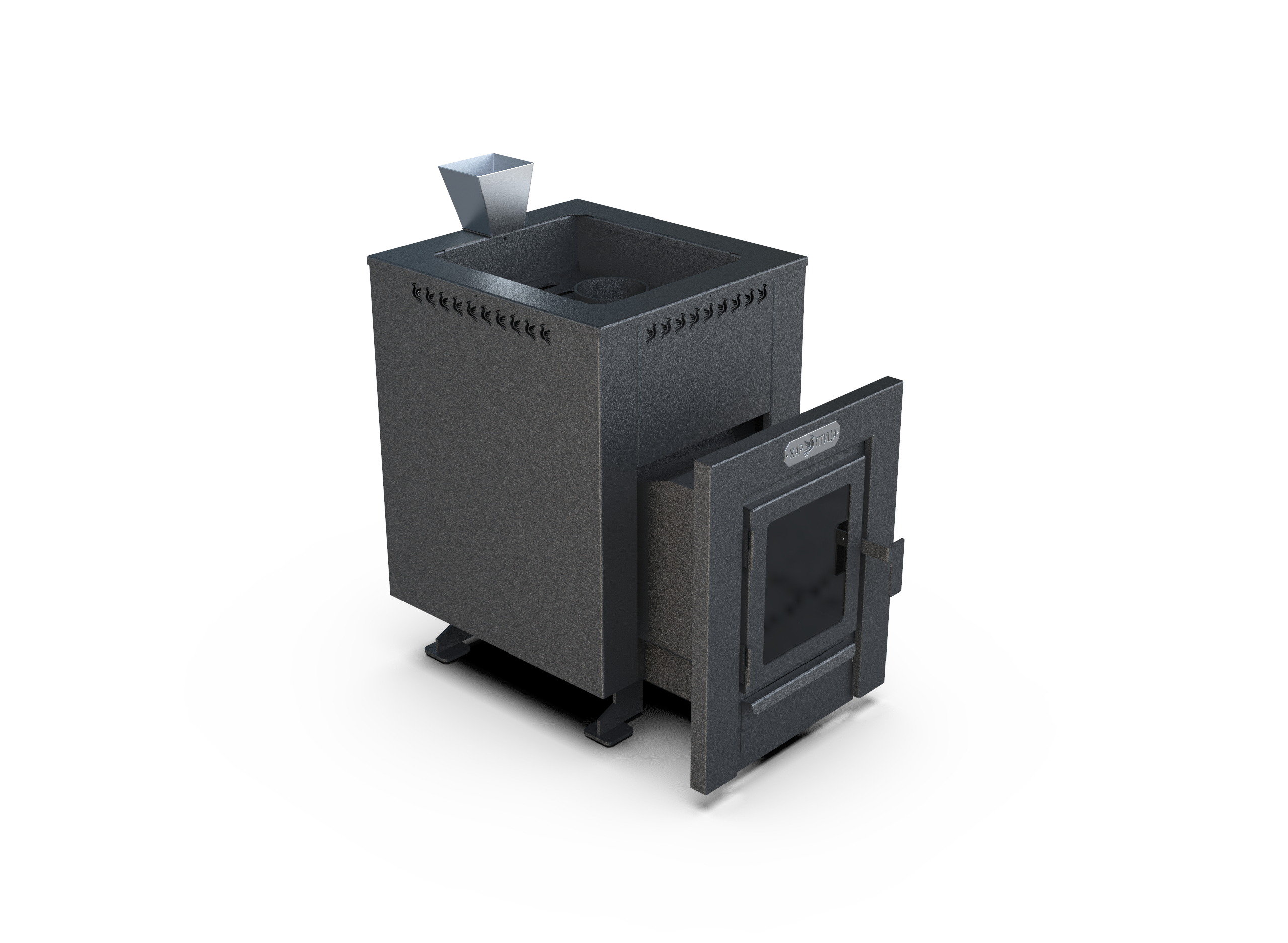 Закрытая каменка формирует лёгкий пар, открытая — поддерживает высокую температуру. Корпус 6 мм сохраняет прочность при интенсивной эксплуатации.