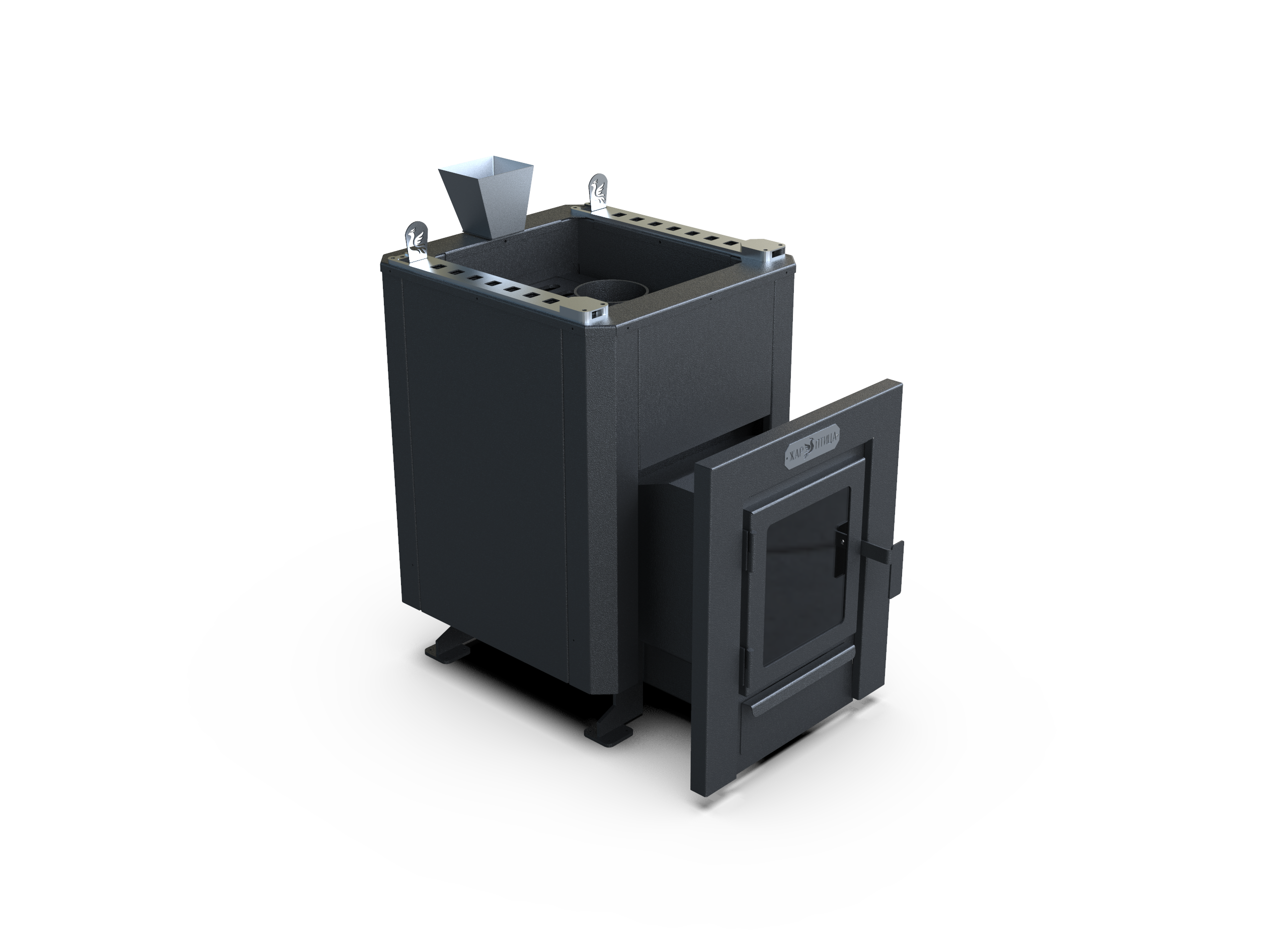 Эта версия ориентирована на управляемый и комфортный пар. Закрытая каменка создаёт лёгкий мелкодисперсный пар, открытая поддерживает температуру.