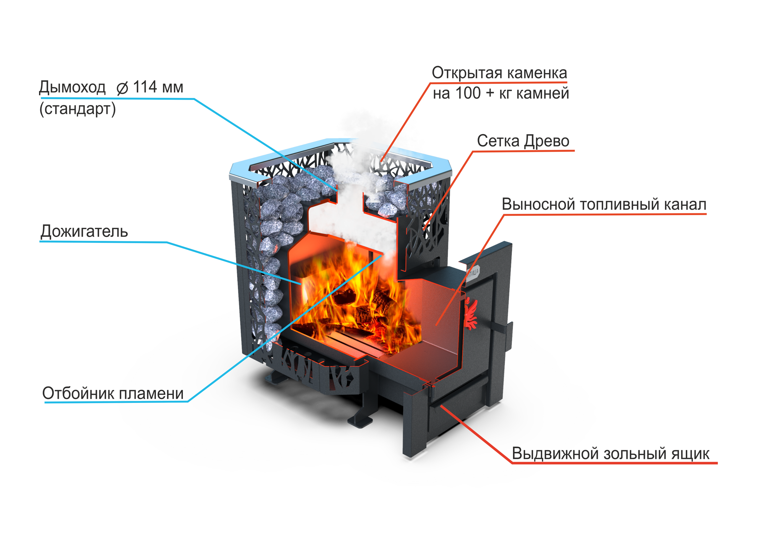 Надёжная банная печь для стабильного жара и уверенного прогрева парной. Открытая каменка в конструкции «сетка» обеспечивает активную теплоотдачу и быстрый набор температуры, формируя насыщенный банный режим.