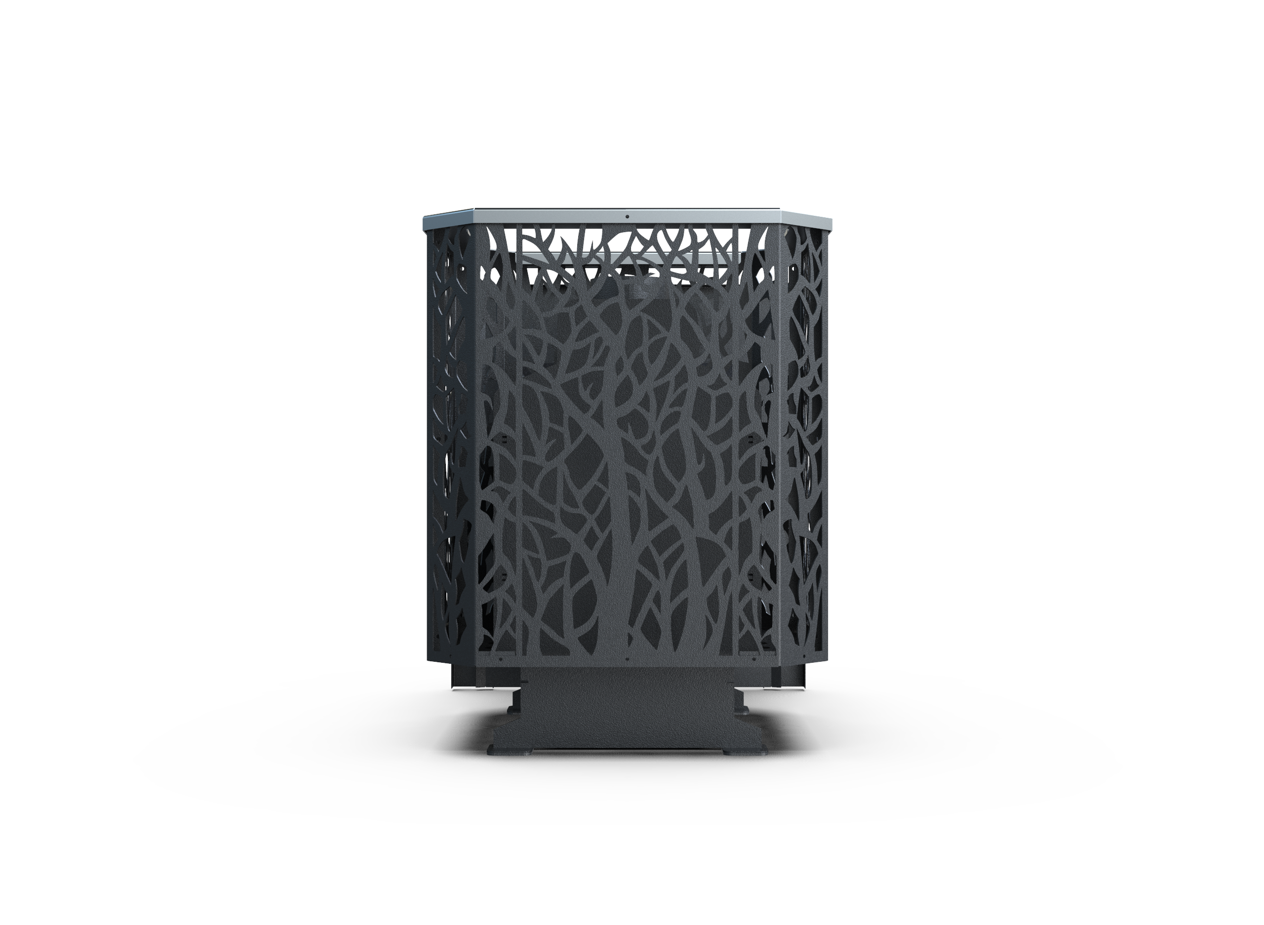 Корпус из стали толщиной 8 мм гарантирует надёжность и долговечность даже при интенсивной эксплуатации. Выносная топка с панорамной дверкой наполняет помещение уютом живого огня, а сетка Древо подчёркивает статусный, премиальный внешний вид печи.