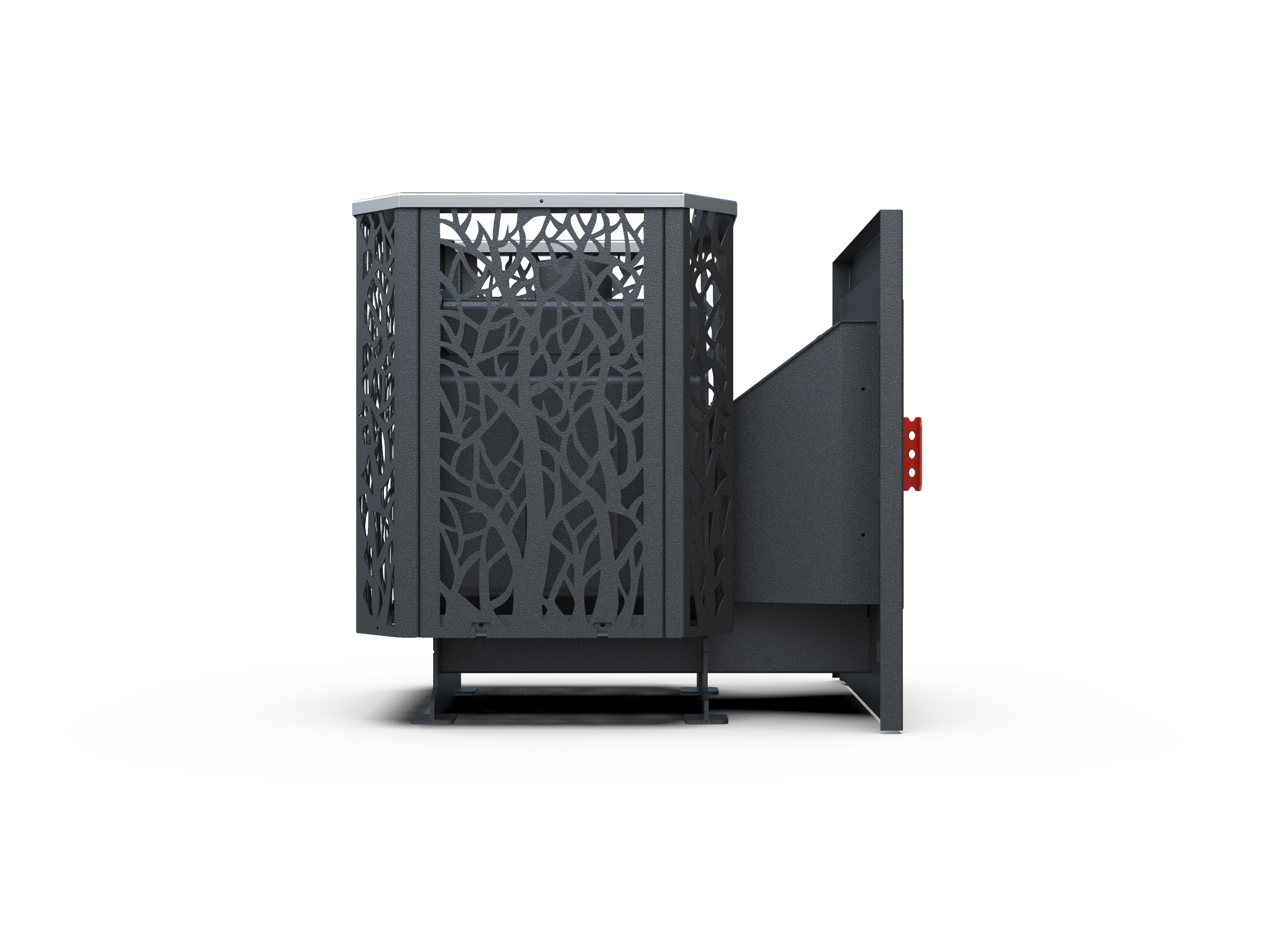 Корпус выполнен из прочной стали толщиной 6 мм, что обеспечивает надёжную работу печи при интенсивных тепловых нагрузках. Конструкция «сетка» способствует равномерному прогреву камней и устойчивому микроклимату в парной.