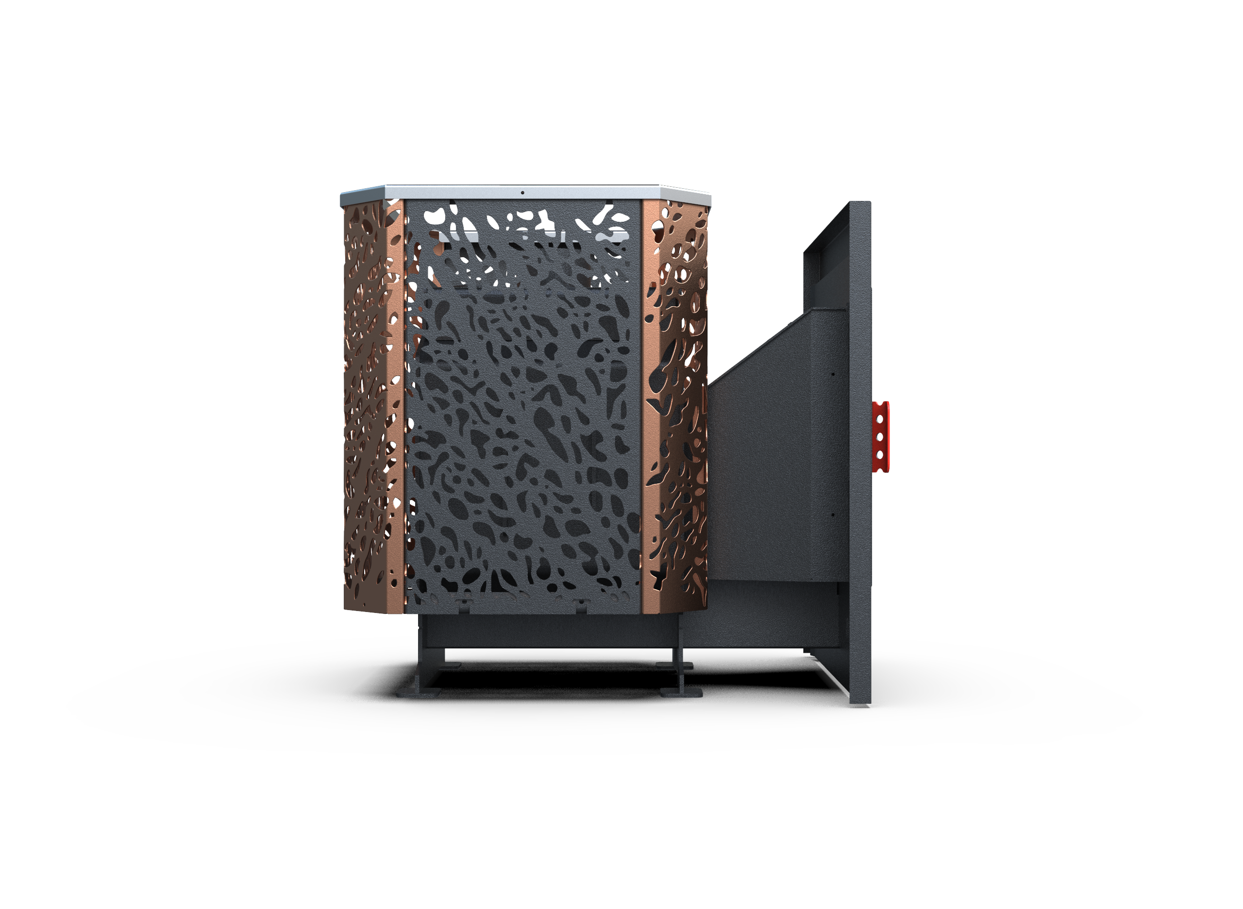 Сетка цвета «медь» подчёркивает современный дизайн, а дымоход диаметром 114 мм обеспечивает стабильную тягу.