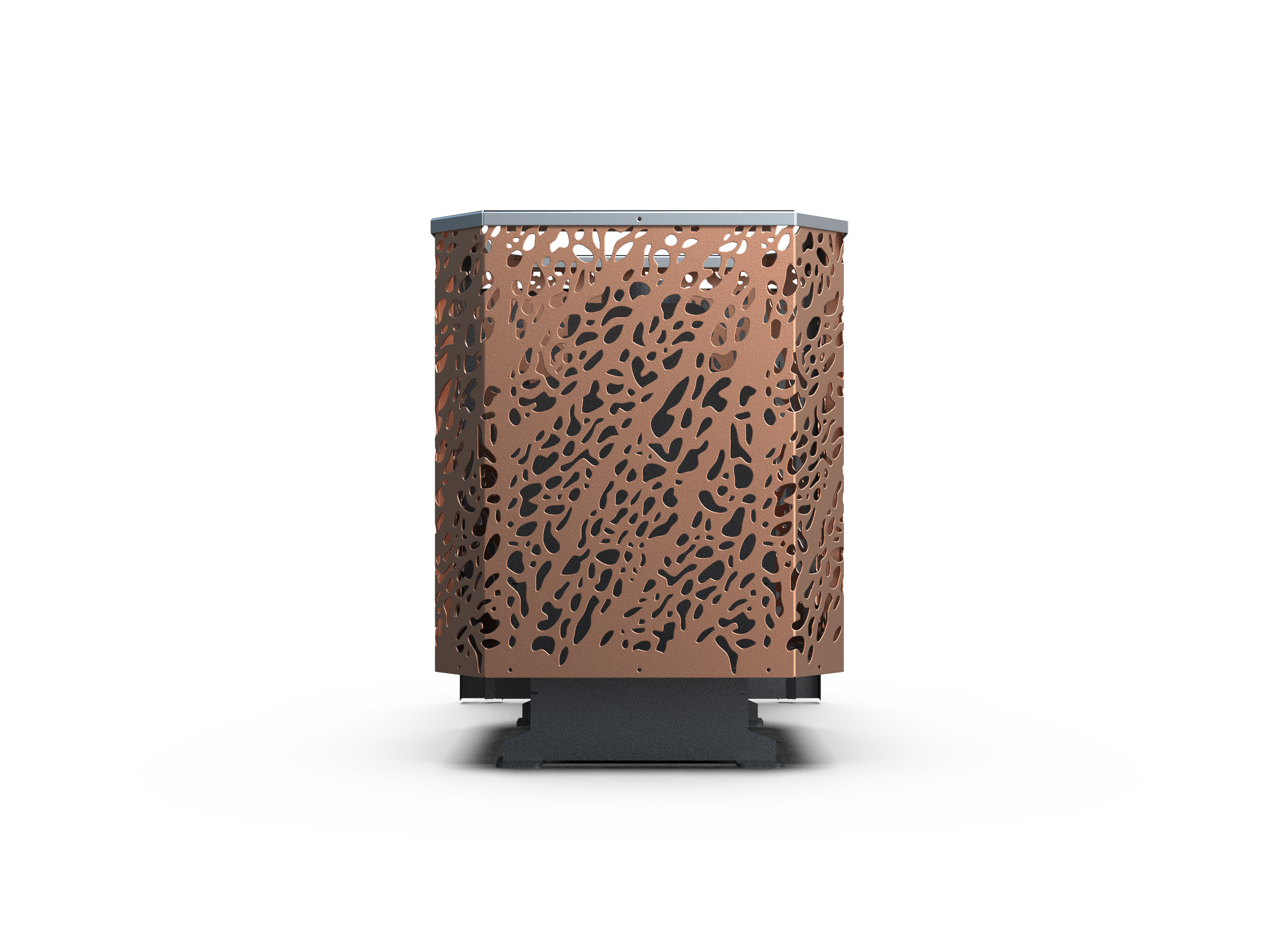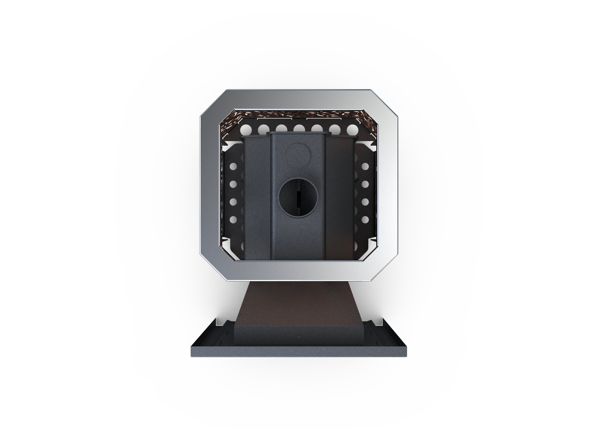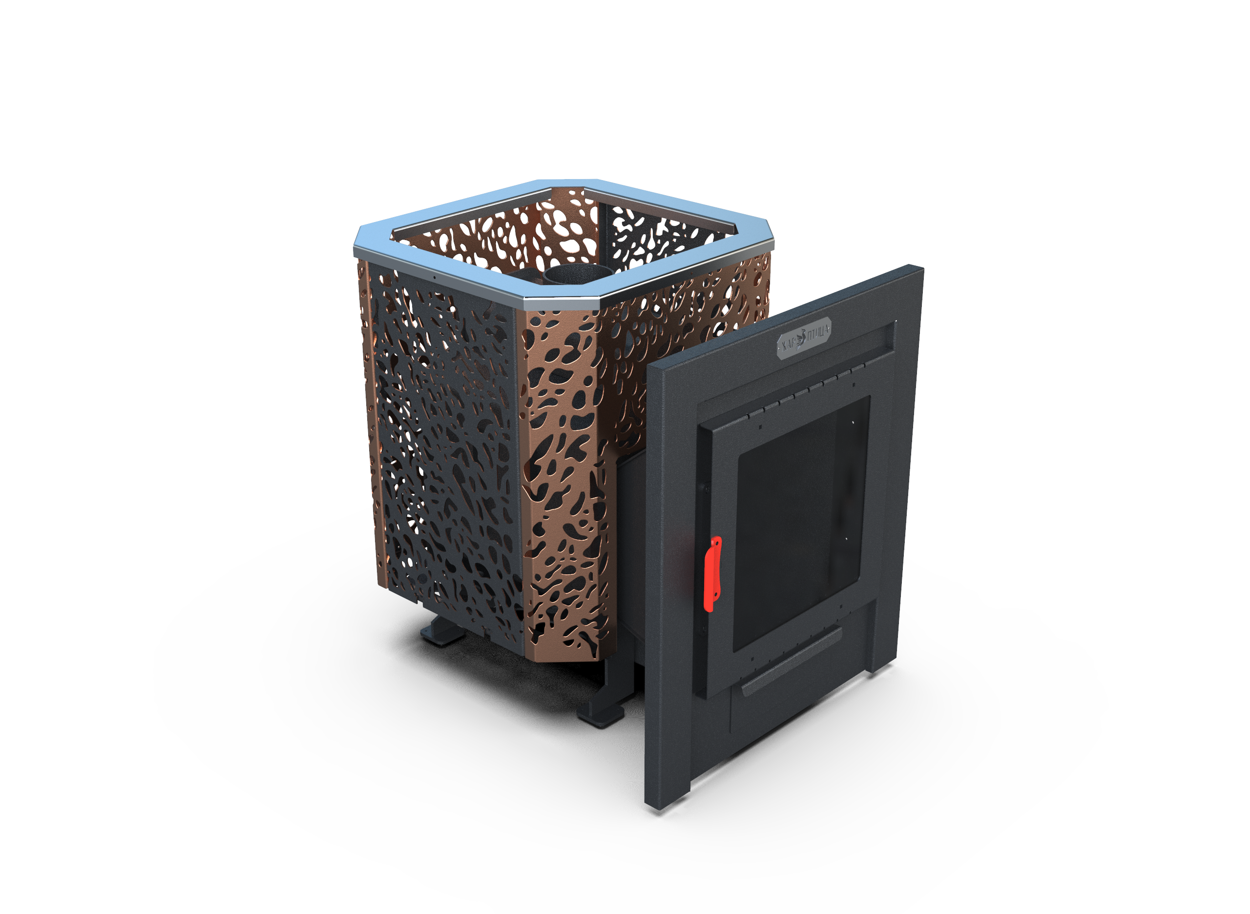 Медная сетка подчёркивает стиль модели, а дымоход диаметром 114 мм обеспечивает эффективную тягу.