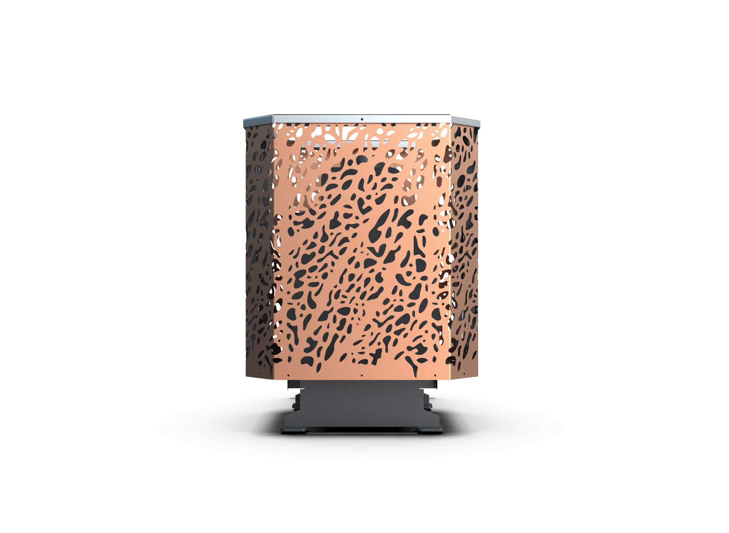 Медная сетка гармонично впишется в интерьер парной, а дымоход диаметром 114 мм обеспечивает эффективное удаление продуктов сгорания.