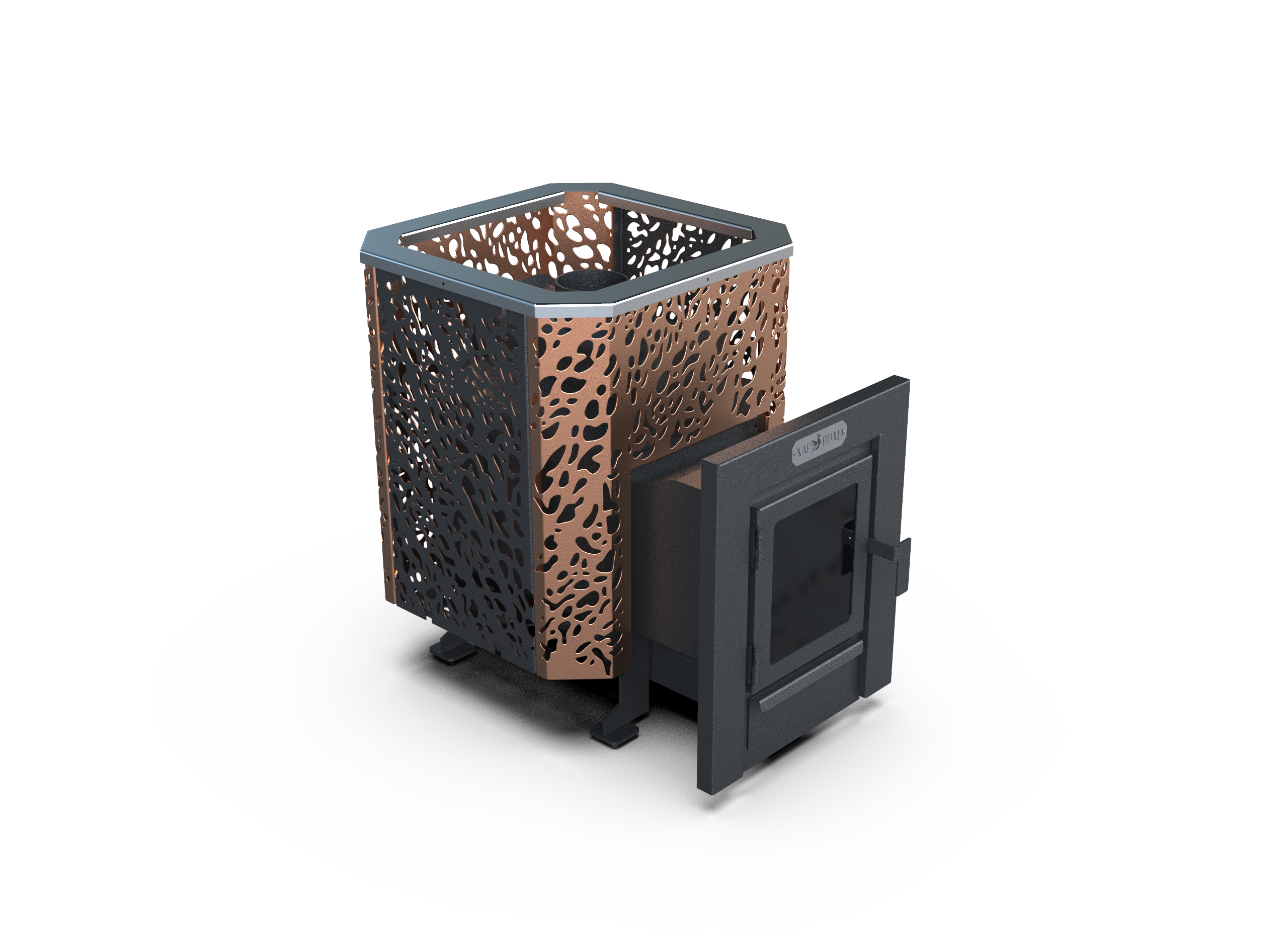 Печь «Душа 15 Сетка леопард» с открытой каменкой, стеклянной дверцей и сталью 8 мм — это сочетание эстетики и максимальной надёжности.