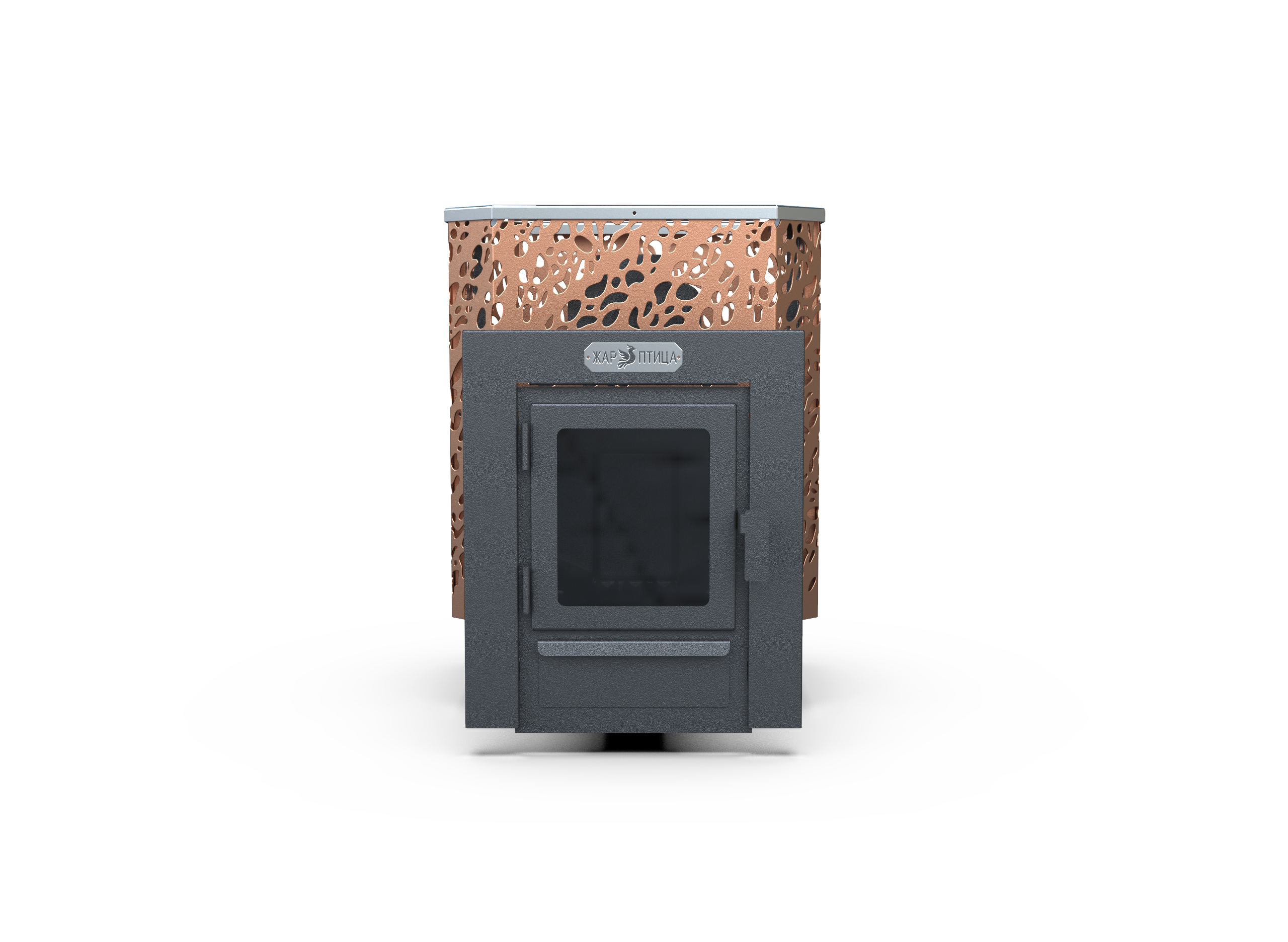 Сетка цвета «медь» делает модель заметным элементом интерьера, дымоход 114 мм гарантирует стабильную работу.