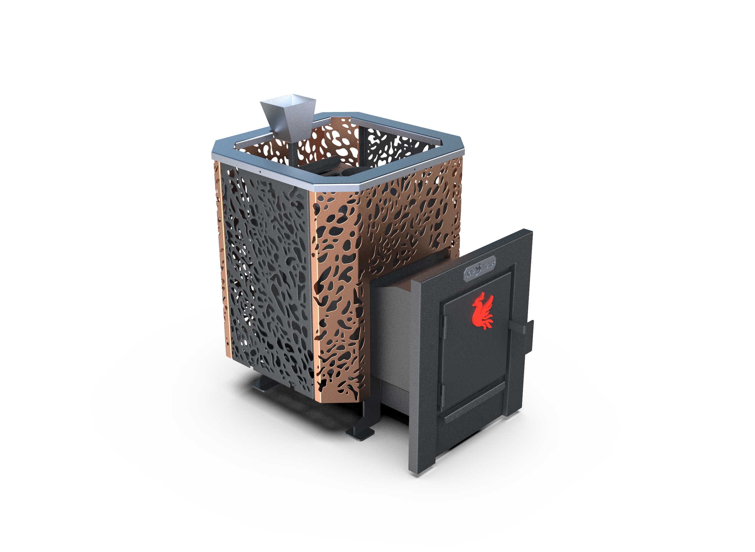 Печь «Душа 15 Сетка леопард» с комбинированной каменкой и усиленной сталью 8 мм предназначена для интенсивной эксплуатации.