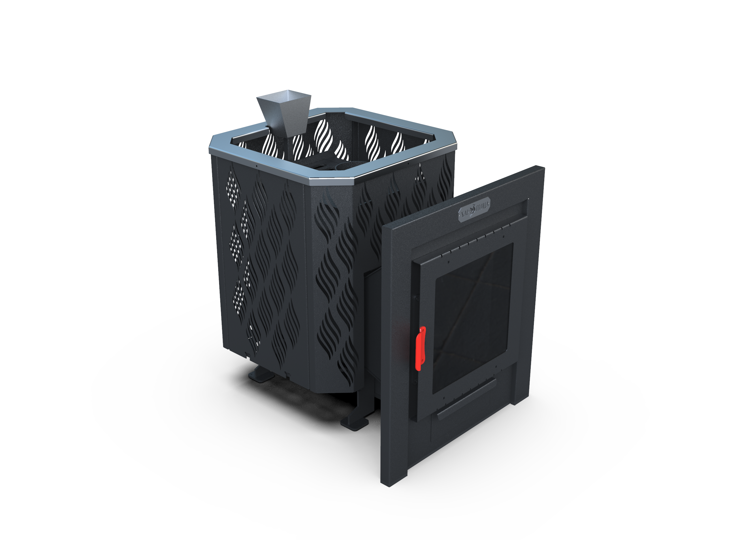Корпус выполнен из прочной стали толщиной 6 мм, что обеспечивает надёжную работу печи при интенсивных тепловых нагрузках. Конструкция «сетка» способствует равномерному прогреву камней и устойчивому микроклимату в парной.