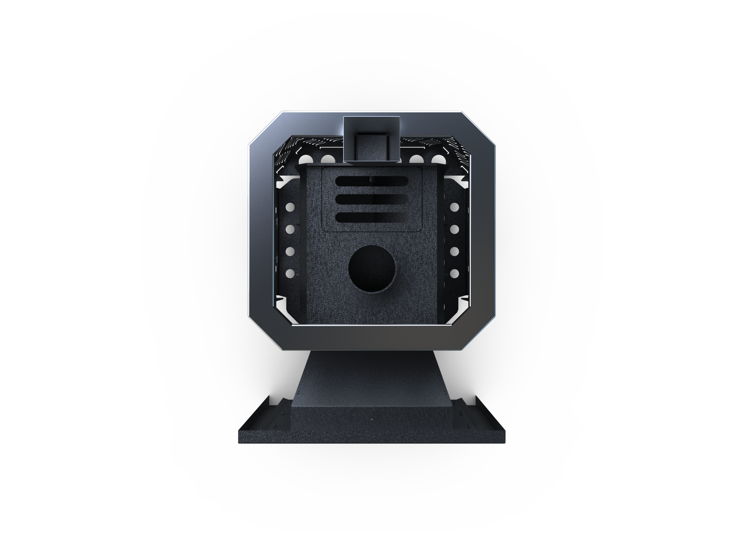 Закрытая каменка обеспечивает мягкий и глубокий пар, а открытая каменка на 100+ кг камней создаёт мощный жар и быстрый прогрев парной. Панорамная дверца превращает печь в центральный элемент бани, создавая эффект камина и атмосферу уюта.