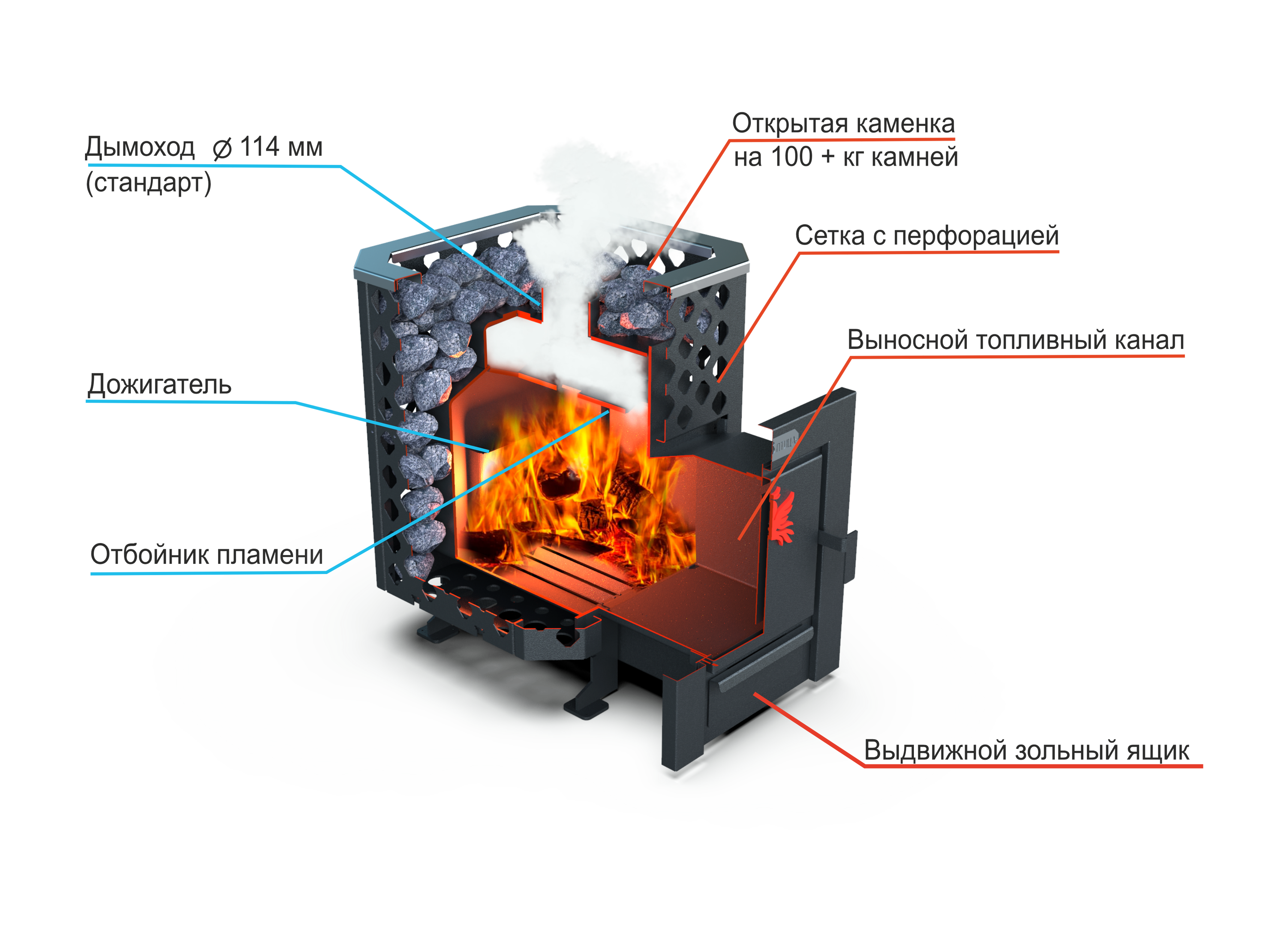 — выносная топка с панорамной дверкой