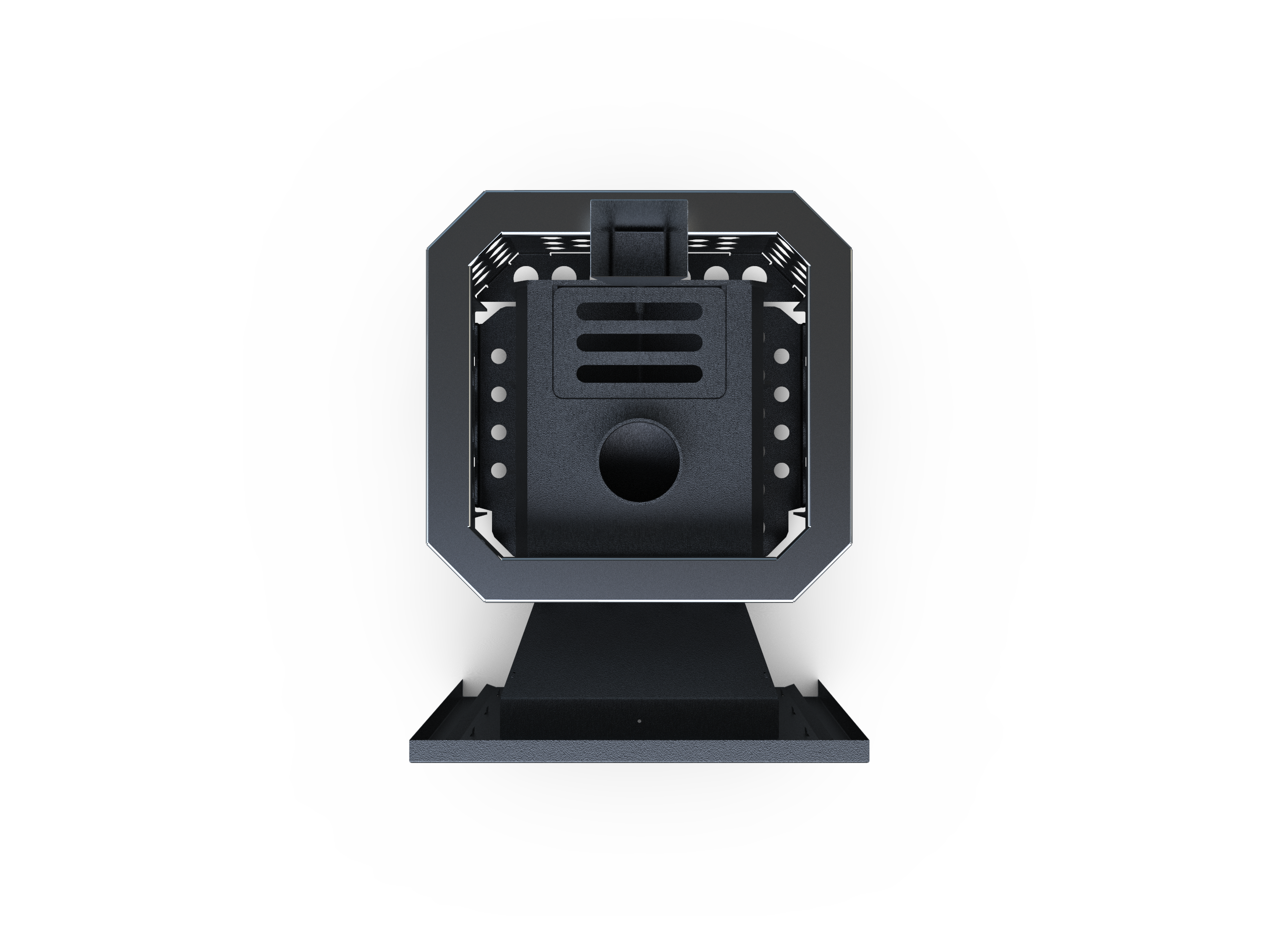 Закрытая каменка обеспечивает мягкий и глубокий пар, а открытая каменка на 100+ кг камней создаёт мощный жар и быстрый прогрев парной. Панорамная дверца превращает печь в центральный элемент бани, создавая эффект камина и атмосферу уюта.
