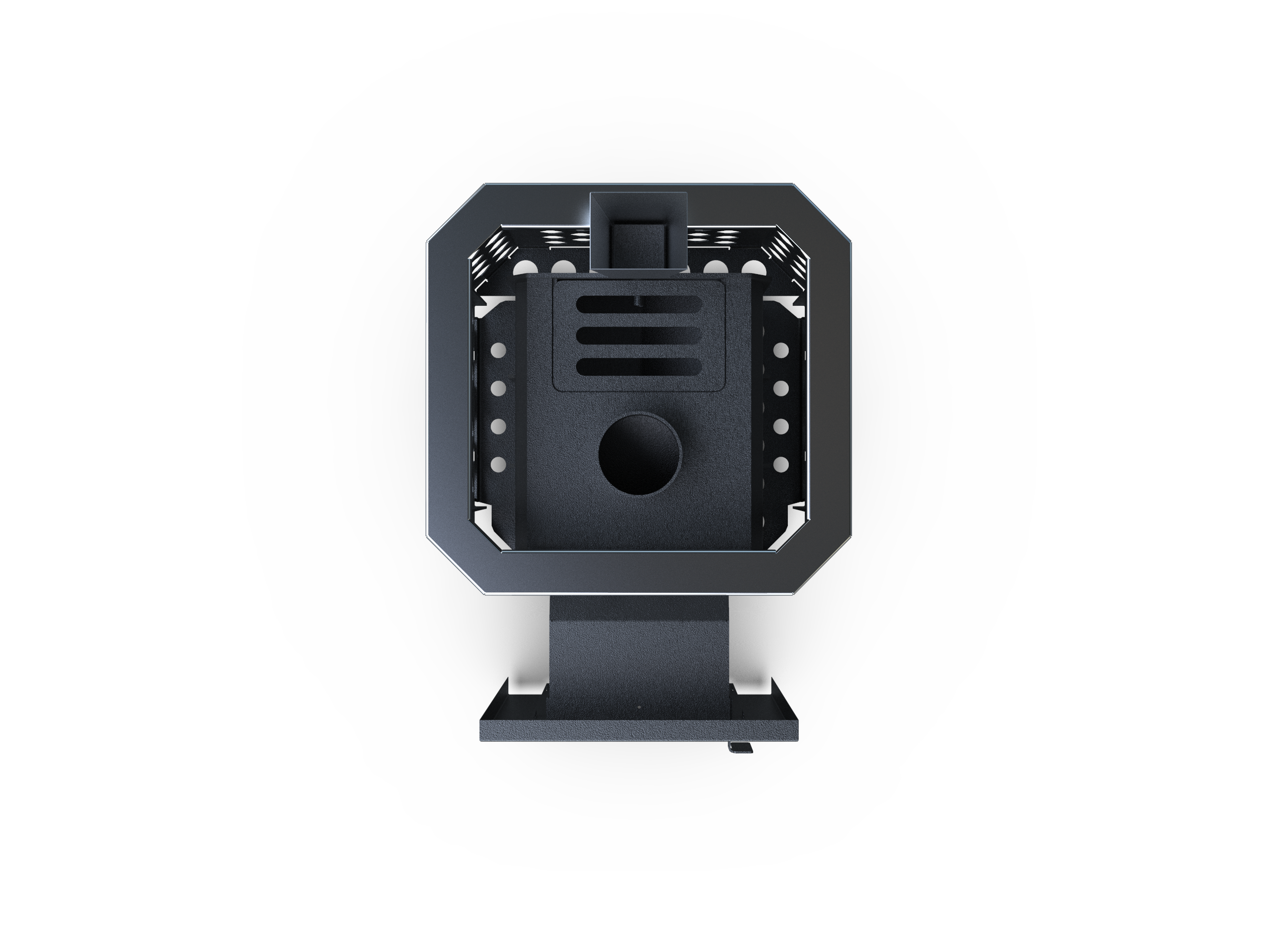 Выносная топка со стеклянной дверкой создаёт уютную атмосферу живого огня и делает процесс топки визуально контролируемым. Сетка подчёркивает аккуратный, современный внешний вид печи.