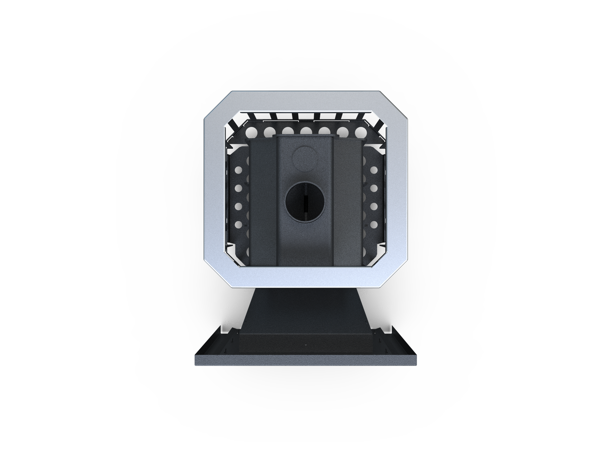 Печь оснащена открытой каменкой , что обеспечивает быстрый прогрев камней и хороший теплообмен. Конструкция «сетка» позволяет равномерно распределять тепло и получать насыщенный, живой пар.