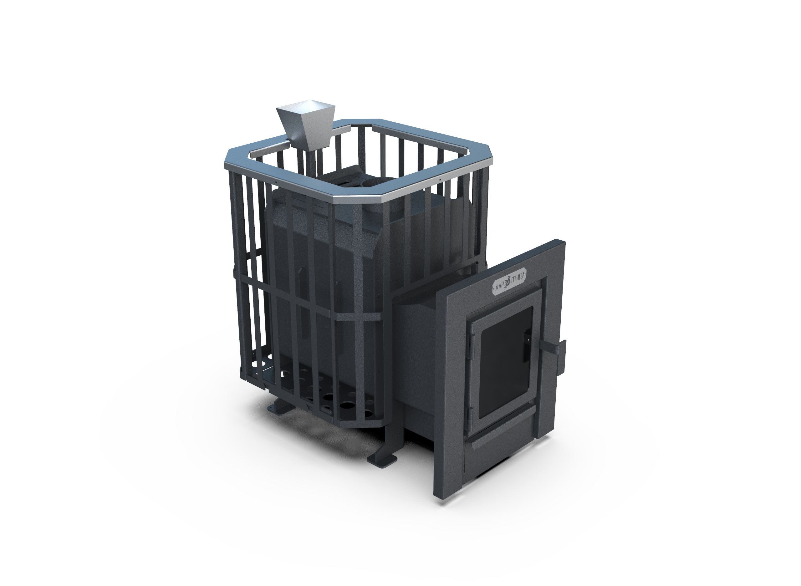 Универсальная банная печь для комфортного и управляемого парения. Комбинированная каменка (открытая и закрытая) позволяет выбирать режим — от мягкого мелкодисперсного пара до активного жара и быстрого прогрева парной.